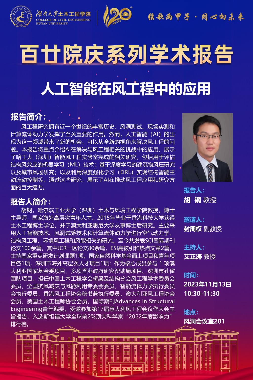 百廿院庆 学术活动|胡钢:人工智能在风工程中的应用