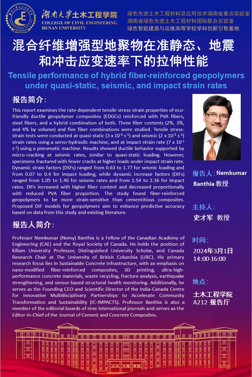 Nemkumar Banthia:混合纤维增强型地聚物在准静态、地震和冲击应变速率下的拉伸性能