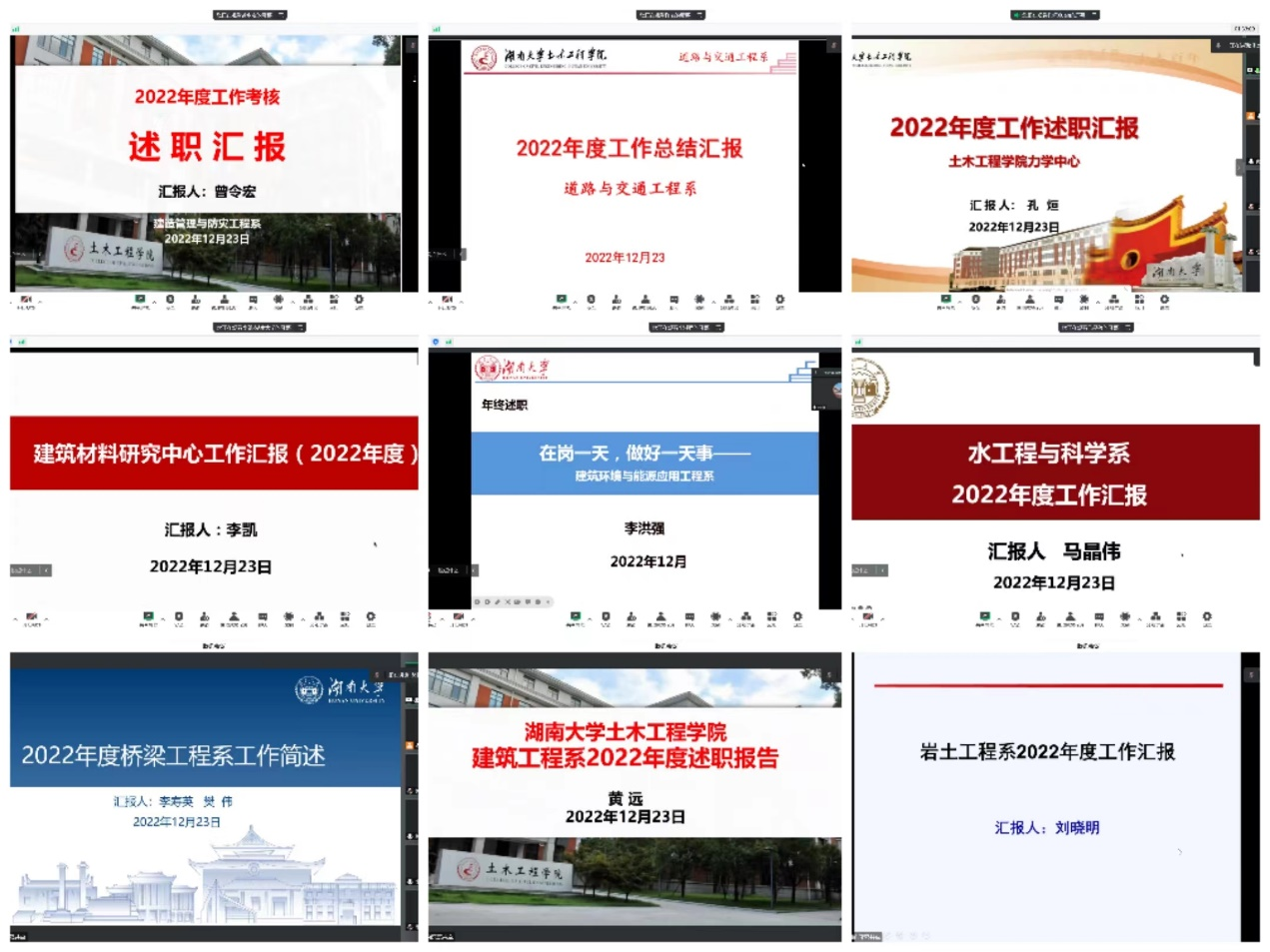 举行2022年度系(中心)工作考核述职线上会议。学院院长邓露、党政班子成员参加会议,学院各系(中心)主任、支部书记参会并作述职报告。学院党委书记彭晋卿主持会议。