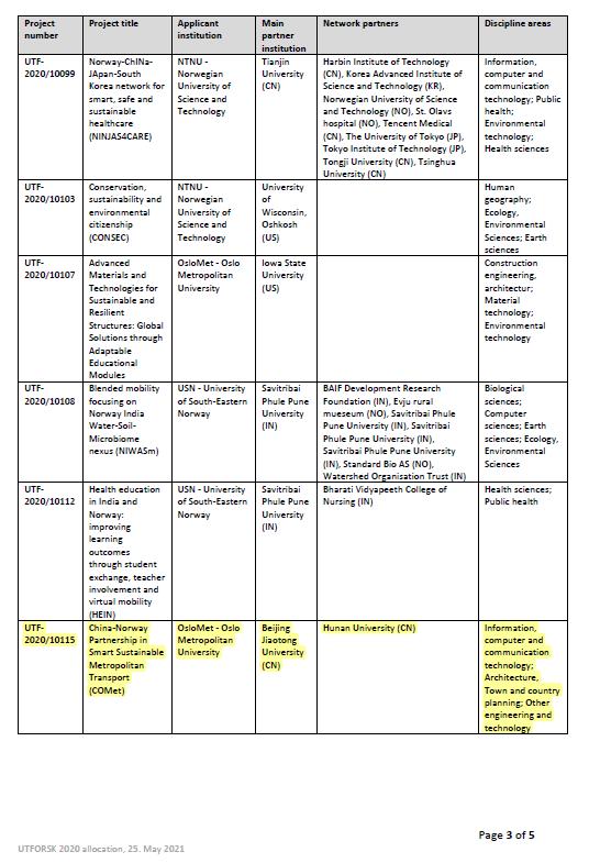 UTFORSK项目是由挪威教育研究部(Norwegian Ministry of Education and Research)资助,挪威高等教育国际合作与质量提升署(Diku)管理,旨在支持挪威与中国、日本、美国等国高等教育机构在可持续未来领域建立长期的合作关系(//diku.no/en/programmes/utforsk)。在2020年度获该项资助的35个项目中,有7个项目涉及中国科研院校与企业。其中,北京交通大学-无码影片