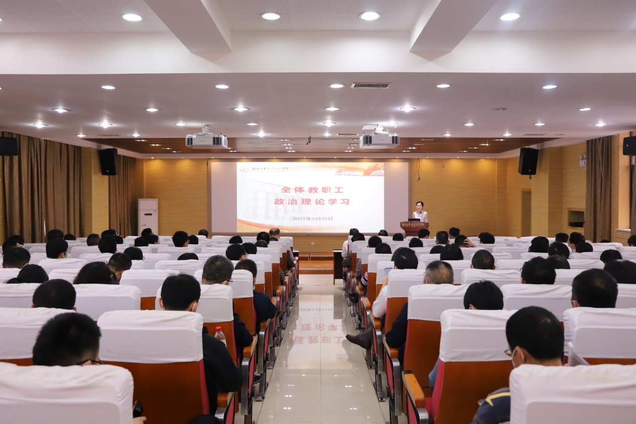 开展“学史崇德”教职工政治学习活动,邀请省委教育工委党校常务副校长刘国华教授做《学史崇德,争做新时代大国良师》专题报告。报告会由党委书记彭嘉芬主持,全体教职工参加。