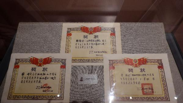 图4:雷锋同志的奖状及雷锋同志在暴雨中抢救水泥的场景
