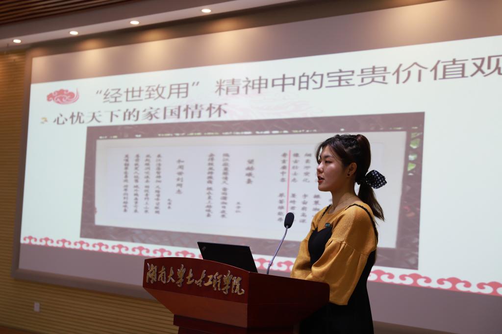 博士理论宣讲团成员岳麓书院2019级中国哲学专业博士生王戈非、2020级中国哲学专业硕士生于淼漪在学院报告厅为全院师生党员代表带来了题为《经世致用的一脉相承》的主题报告,为大家讲解了实事求是的源头,阐述了经世致用作为岳麓书院最具代表性的精神始终在学校办学中所发挥的重要作用。学院党政班子成员、教工党支部书记和学生党支部书记及支部委员参加。