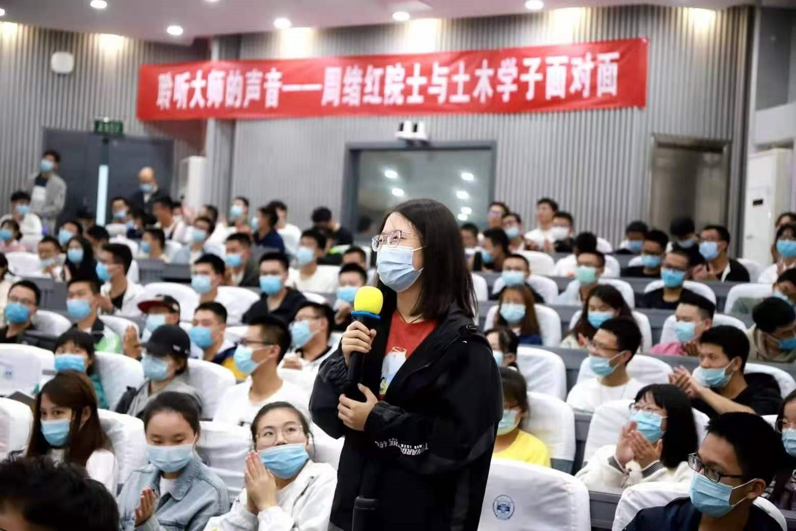 最后,周绪红院士深情勉励全体土木学子:“你们生长在一个好时代,祖国建设需要你;你们学了一个好专业,古今中外、衣食住行、上天入地下海离不开你;你们拥有好的前途,命运自己掌握,个人价值与国家发展一致。期待你们有一个美好的土木人生!”现场掌声雷动,经久不息。土木学子纷纷表示,今后将脚踏实地,练就过硬本领;坚定信念,服务伟大事业;矢志奋斗,报效祖国人民。
