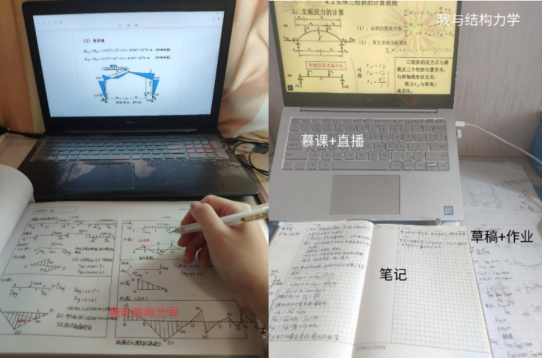 周老师还开展了题为“我和结构力学”的教学活动,关注同学们在家中的实际学习状况。由于课程在上午12节,周老师每次课前会早早督促同学们做准备,提前进入课堂。对于新疆的同学来说,早上8点上课任务比较艰巨,但他们也克服了重重困难,家中没有特殊事情的情况下都能及时到课完成学习。两个班的同学在课程学习的过程中互帮互助,学习氛围浓厚。
