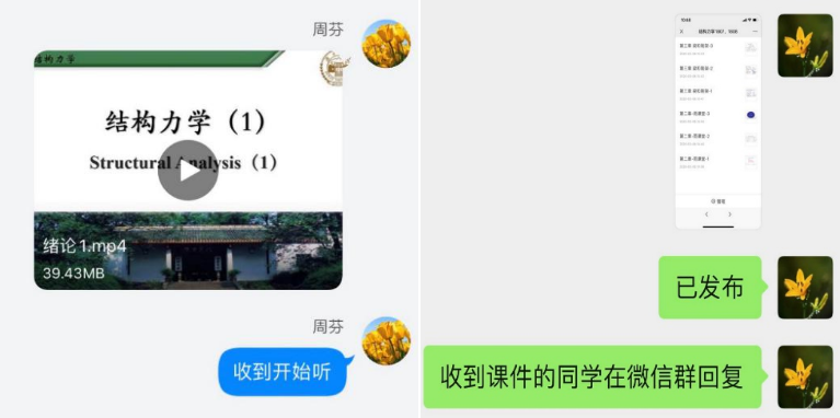 结构力学课程要跨越两个学期,打好基础很重要。疫情期间周老师利用学院已经上线的结构力学慕课,建立同步SPOC。每周发布教学公告,鼓励同学们利用业余时间完成预习、复习任务,自己做好答疑工作。