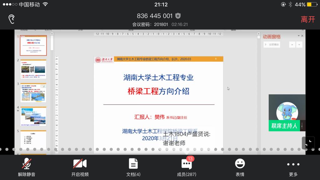 樊伟结合国家交通建设的重大需求谈为什么要学桥梁。从学院学科历史,实验室条件,人才培养,科学研究,导师介绍等方面谈为什么要选择湖大土木桥梁。