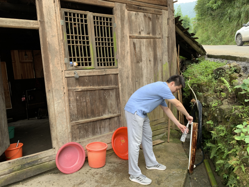 支部成员在本次扶贫调研活动中坚持以人民为中心的帮扶思想,切实为帮扶对象办好事、办实事,支部成员充分利用专业科技知识对梁完中家中自来水进行取样并带回学校分析是否符合饮用水水质标准,切实保障帮扶对象生活饮用水健康安全。