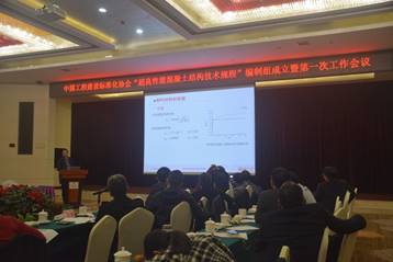 院长施周教授、中国工程建设标准化协会混凝土结构专业委员会秘书长朱爱萍、副主任程骐、主编单位及参编高校、科研院所、企业单位的四十余位专家、教授以及来宾出席了本次会议。中国建筑标准化协会秘书长朱爱萍、项目负责人史才军教授先后主持了项目的启动会和规程编制方案讨论会。