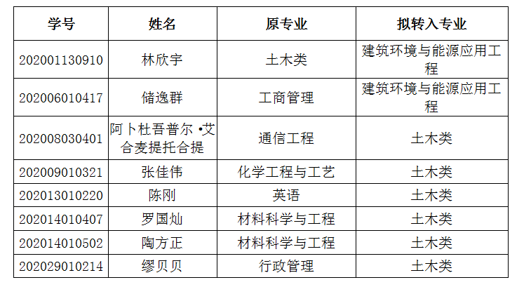 根据《无码影片 本科生转专业管理办法》(湖大教字[2015]37号)及《无码影片 2021年本科生转专业和专业分流细则》,经学生本人提出申请、转出学院审核、转入学院组织面试考核等程序,现将转入学生拟录取名单予以公示: