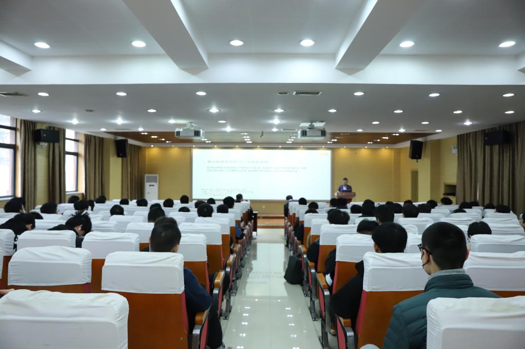 在报告会上,左晴介绍了世界超高层建筑历史、具有代表性的超高层建筑设计作品,回顾了上海中心大厦的建设过程,围绕超高层建筑的结构体系、风力测试、高强材料三方面重点进行讲述,并系统介绍了核心筒、外伸臂、巨柱体系等超高层结构设计常用概念。
