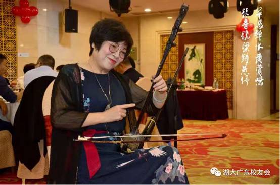 年会晚宴由姜乃昌老师和杨立女士(77级校友)的合唱《白毛女》拉开了序幕;来自深圳的79级校友刘东辉女士表演的二胡独奏《明月千里寄相思》、《赛马》,宛如天籁之音,惊艳全场;最后由天津国威阀门刘永董事长献唱的《滚滚长江东逝水》、《父亲,我记住了》更是将晚宴推向高潮。
