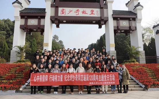党委中心学习组成员、离退休党员教师代表和学生骨干等一行80余人,在党委书记施周的带领下走进伟人故乡——花明楼镇,举行“庆祝改革开放40周年暨纪念刘少奇同志诞辰120周年”主题党日活动。