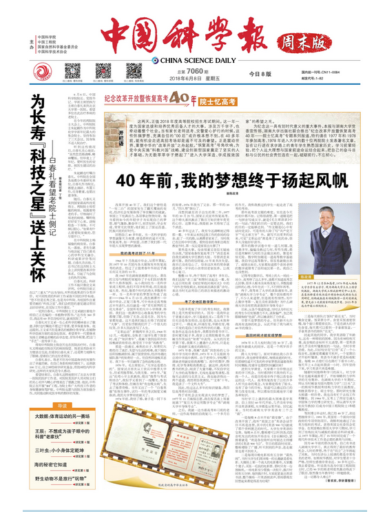 纪念改革开放暨恢复高考40年——院士忆高考专栏