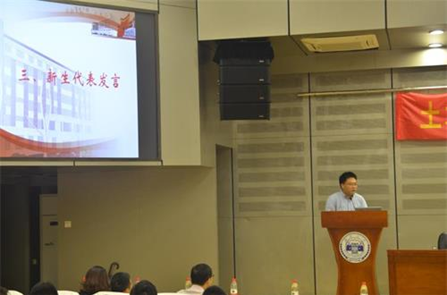 接下来,新生代表段祖睿同学代表全体新生发言。在母校的孕育和自身的努力下他告别本科,带着“土木人,优秀是一种习惯”的誓言继续研究生阶段的学习,他承诺定将秉持校训,铸造土木人更好的明天,并在教师节来临之际对老师们致以衷心的祝愿。