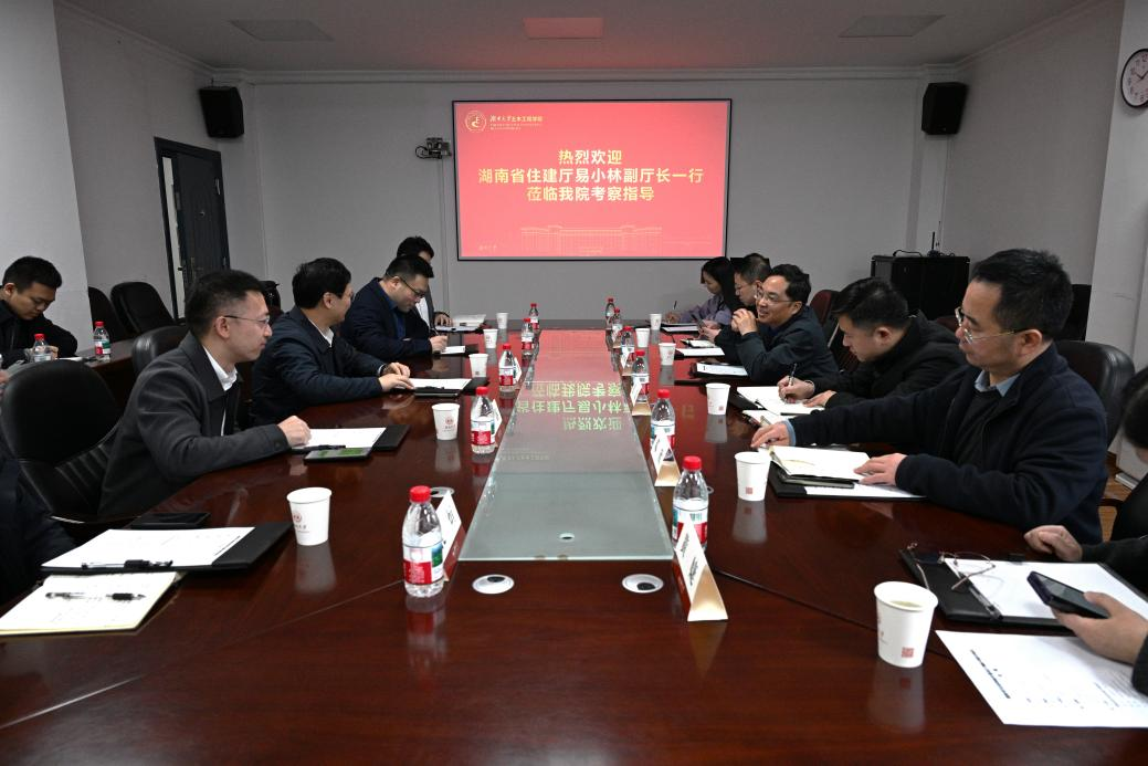3月19日,湖南省住房和城乡建设厅党组成员、副厅长易小林一行来院考察调研。学校副校长陈仁朋、学院院长华旭刚、副院长张超、学院教授邓露等陪同参观。