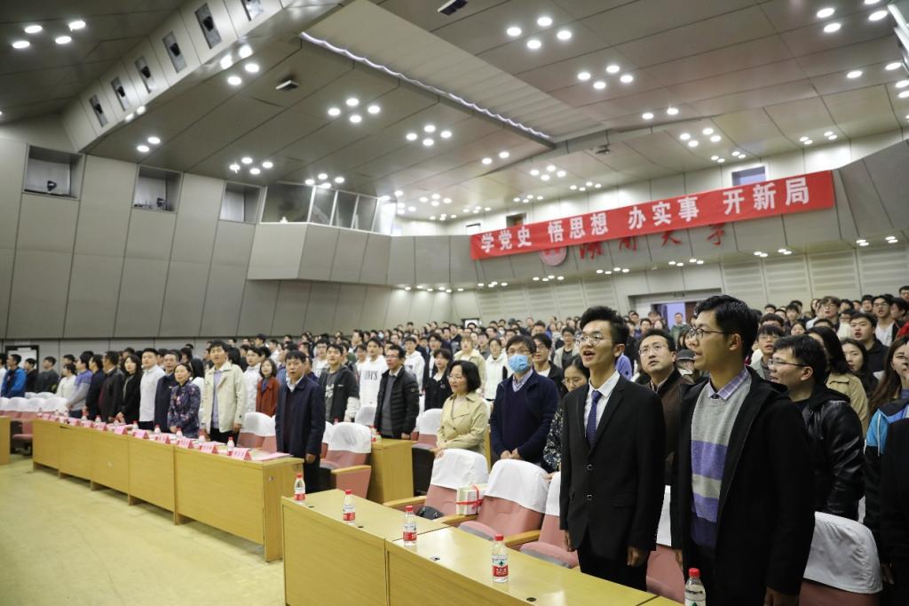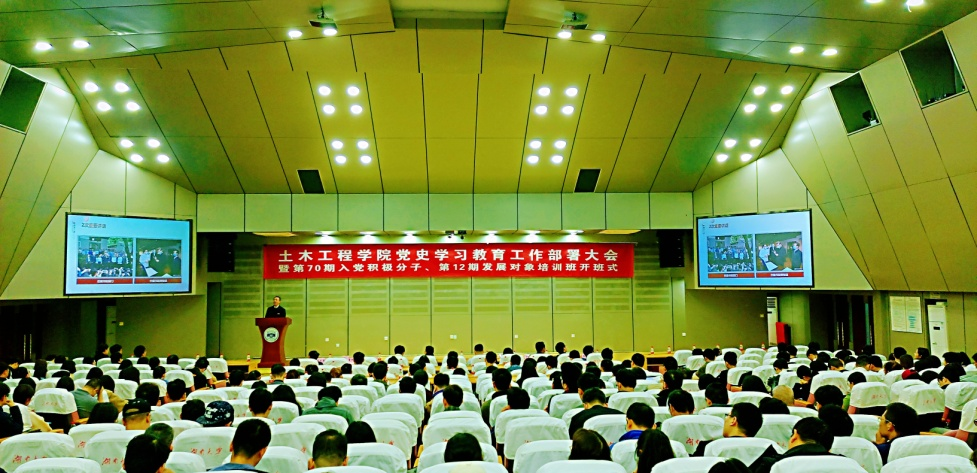4月9日下午,土木工程学院党史学习教育工作部署大会暨第70期入党积极分子、第12期发展对象培训班开班式在逸夫楼报告厅举行。校党史学习教育领导小组办公室主任、党委常委、宣传部部长、马克思主义学院院长唐珍名作专题辅导报告。学校党史学习教育第七巡回指导组组长、离退休处党委书记吴清风出席会议并讲话。院党委书记彭嘉芬主持。巡回指导组成员、校纪委监察处副处长李海滔,巡回指导组联络员、党委组织部正科级组织员晏伟,党校正科级组织员靳琳以及学院党政领导班子、党支部书记、支部委员、离退休党支部代表、师生党员代表、第70期入党积极分子、第12期发展对象400余人参加会议。